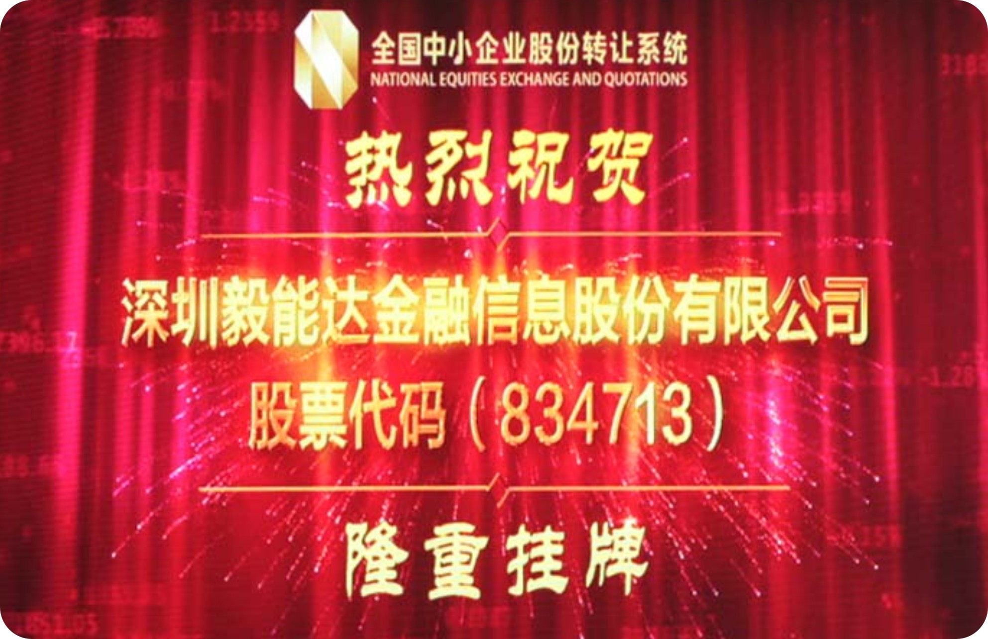 2016年4月7日深圳毅能達金融信息股份有限公司在全國中小企業股份轉讓系統(簡稱“新三板”)正式掛牌上市。
