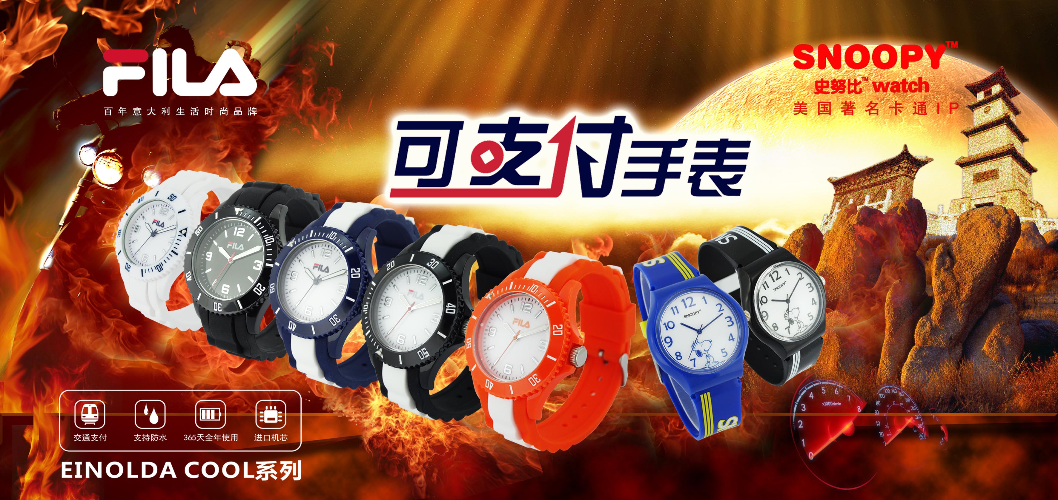 該系列手表是由毅能達(dá)攜手兩大國際品牌——意大利著名時(shí)尚運(yùn)動品牌FILA(斐樂)和美國著名時(shí)尚卡通形象SNOOPY(史努比)聯(lián)手打造。它保持了傳統(tǒng)手表的外觀,但與其他具有支付功能的智能手表有著最大的區(qū)別,該手表僅保留了支付功能,而摒棄了智能手表中其它耗電的一切功能,從而使該表的續(xù)航能力達(dá)到365天以上,和普通的石英表一致。