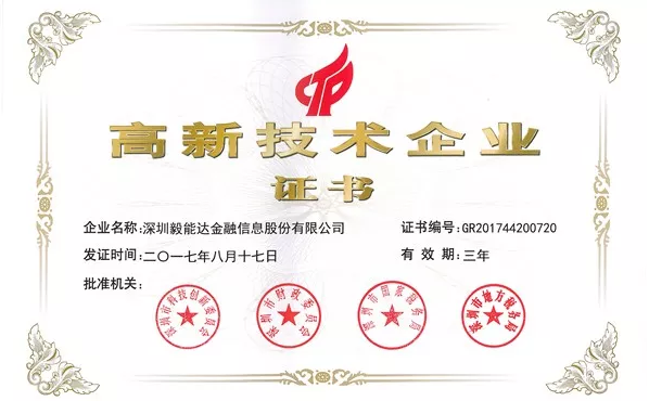 此次,由深圳市科技創新委員會、深圳市財政委員會、深圳市國家稅務局、深圳市地方稅務局聯合批準的“高新技術企業”證書正是對毅能達自主創新發展理念的認可與支持。