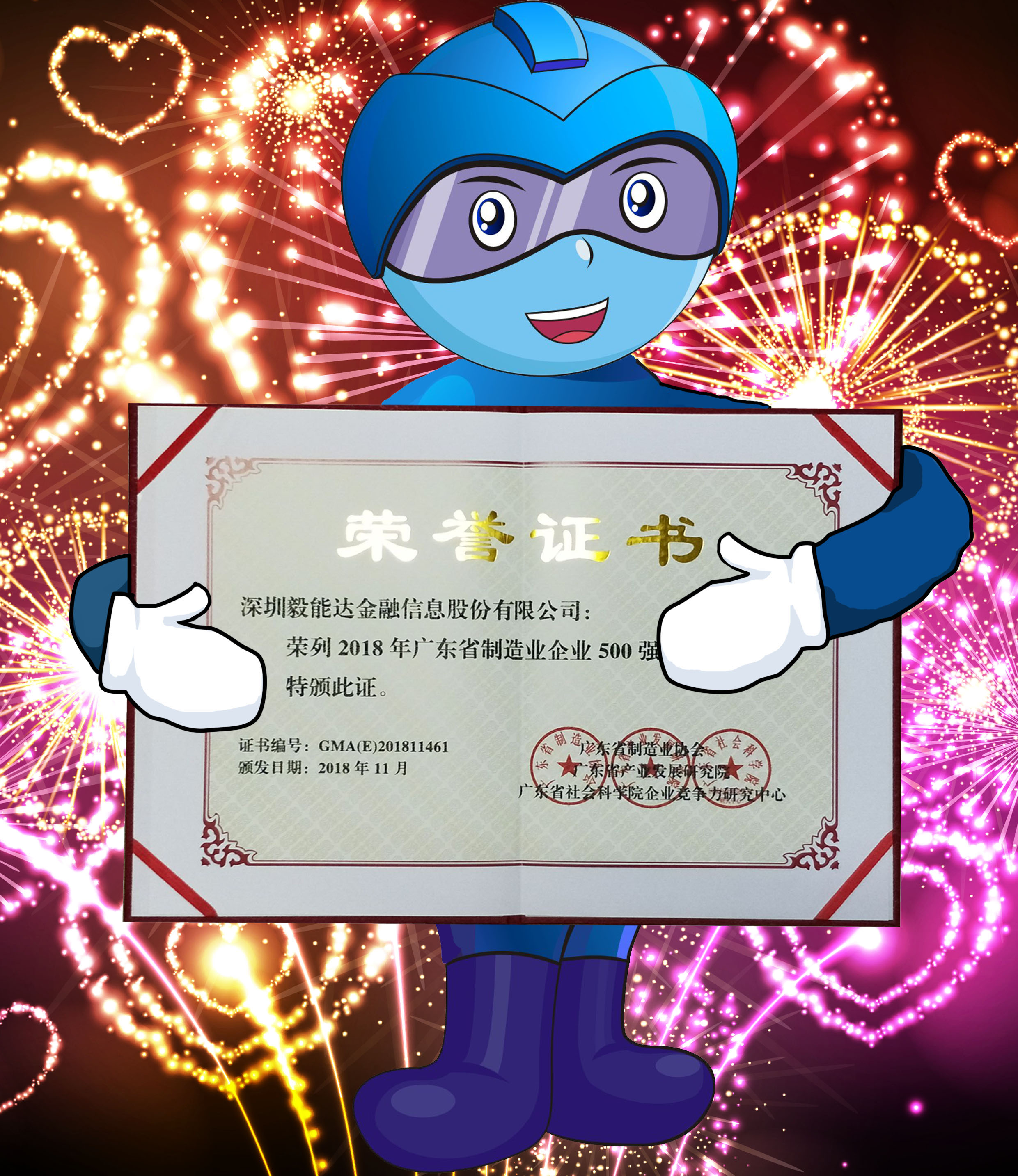 “金榜”題名——毅能達(dá)榮獲2018廣東省制造業(yè)500強企業(yè)