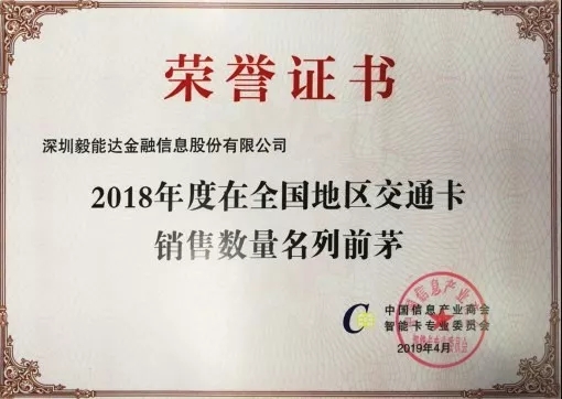 毅能達,作為一家擁有二十多年智能卡生產、制造經驗的大型企業,在行業中擁有舉足輕重的地位,強大的綜合實力、良好的業界信譽讓毅能達在行業競爭中處于領先優勢。在本次評優中,毅能達同時榮獲了三大榮譽證書: