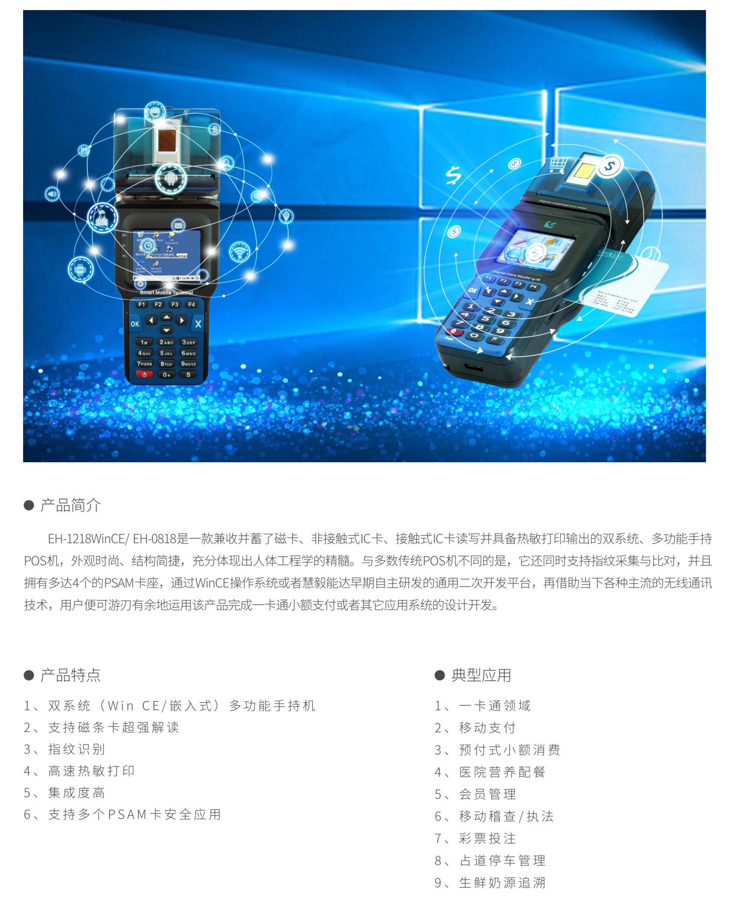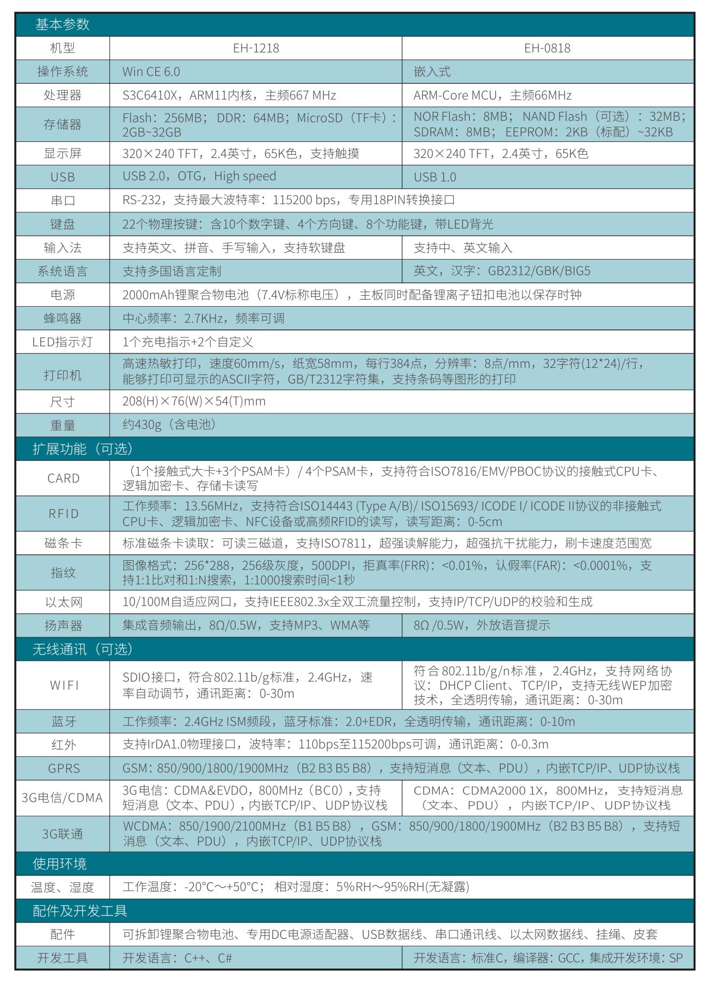 產品名稱:EH-1218WinCE /EH-0818多功能指紋彩屏手持POS機
